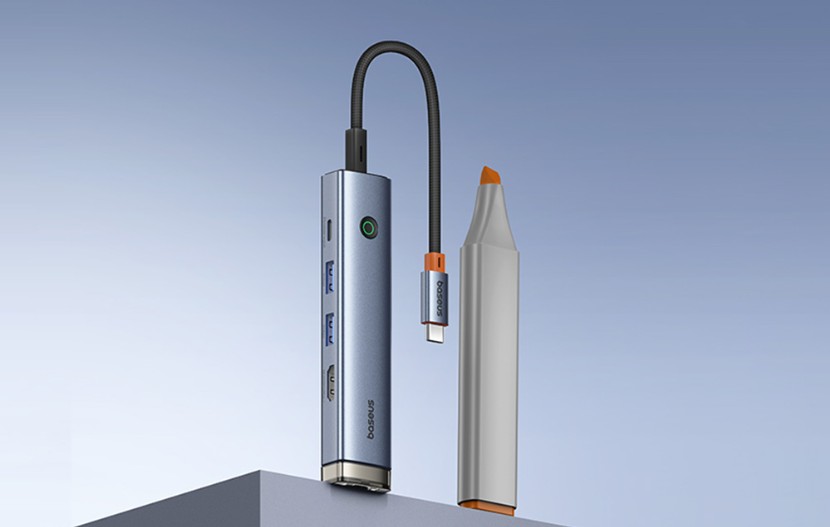 Baseus Ultra Joy BS-OH165 je elegantní USB-C rozbočovač 5 v 1 navržený tak, aby pokryl všechny běžné potřeby uživatelů. Kombinuje nejužitečnější porty – HDMI, dva USB 3.0, PD 100 W a Ethernet RJ45 – díky čemuž snadno rozšíří konektivitu notebooku, tabletu nebo telefonu. Tělo z hliníkové slitiny 6063 podtrhuje odolnost a prémiový vzhled, zatímco kompaktní rozměry zajišťují maximální mobilitu.