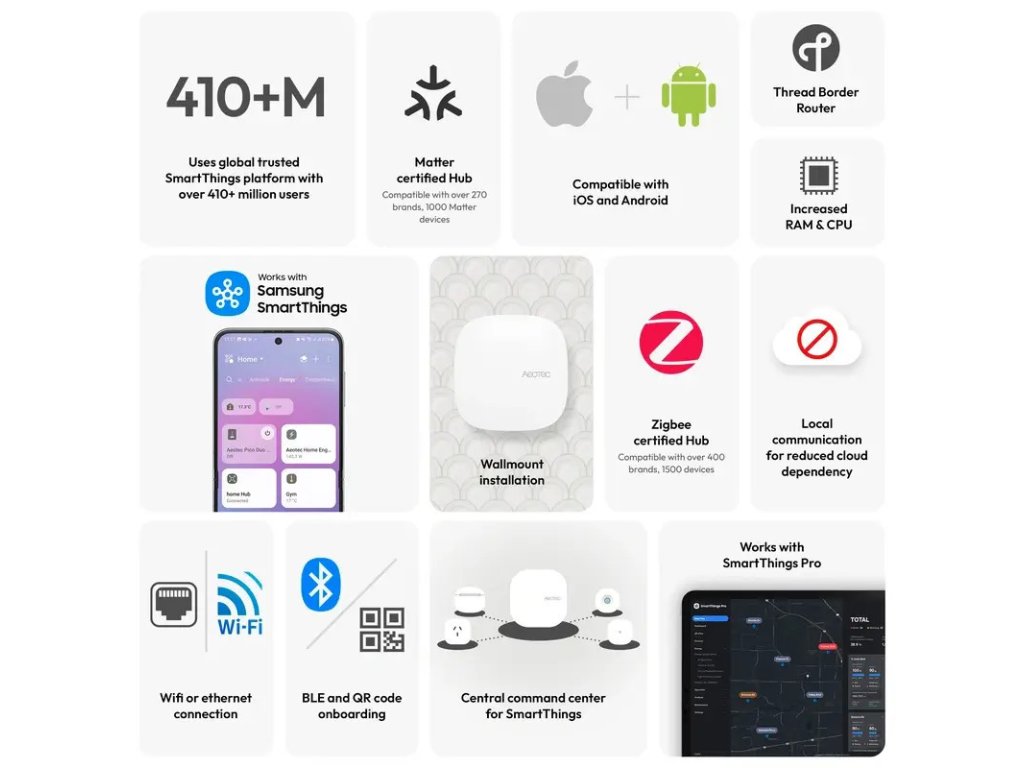 Hub je plně připraven na standard Matter, díky čemuž zvládne připojit více než 300 zařízení od 180+ značek.