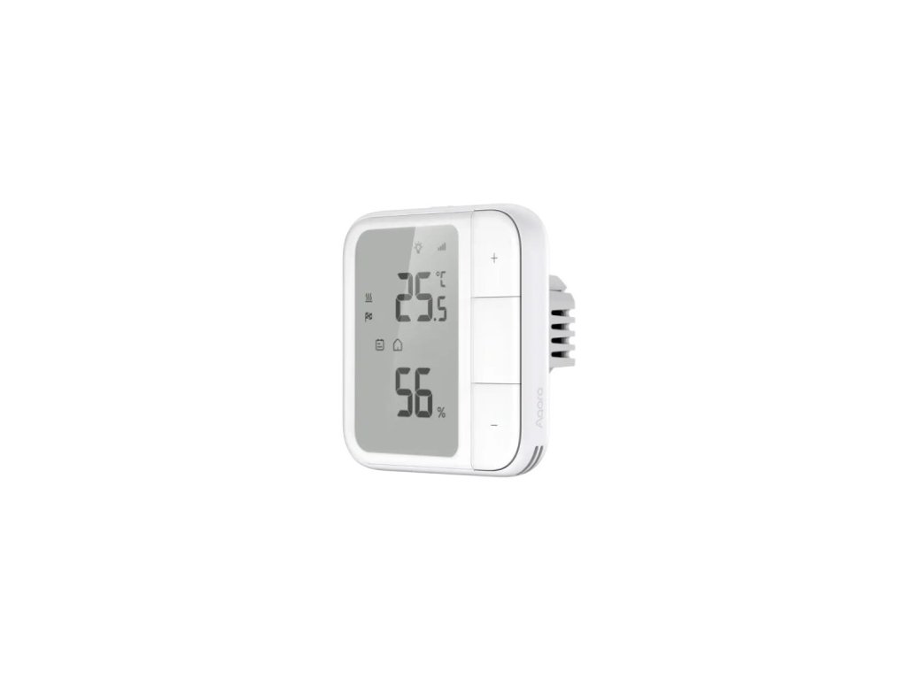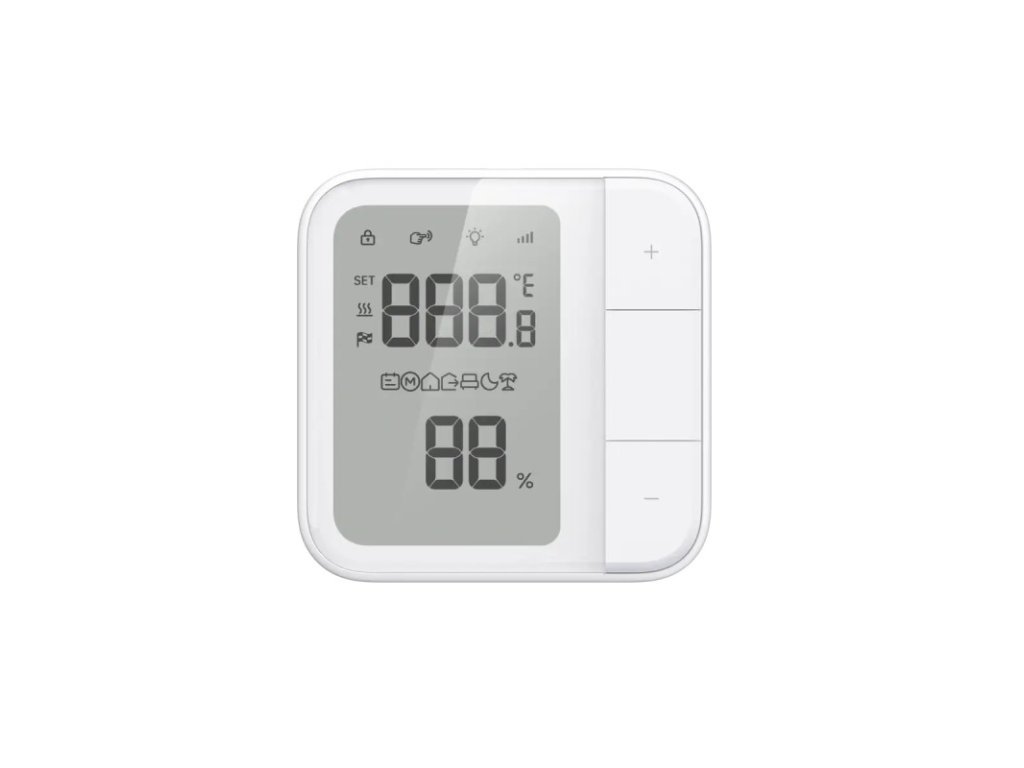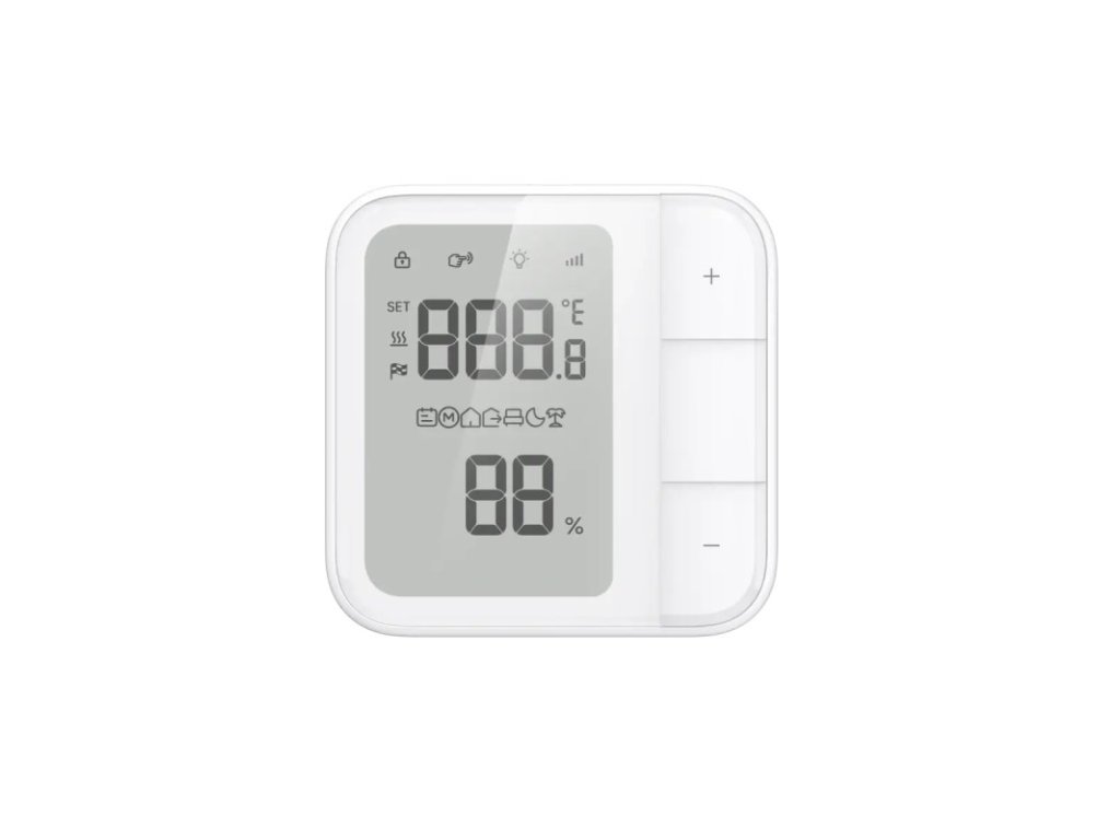 W500 má vestavěný senzor teploty a vlhkosti a podporuje připojení externího NTC čidla podlahy (v balení). Displej je přehledný a podsvícený, vhodný pro evropské instalační krabičky. Teplotu lze regulovat fyzickými tlačítky, vzdáleně přes aplikaci Aqara Home, nebo hlasem (Alexa, Google, Siri).