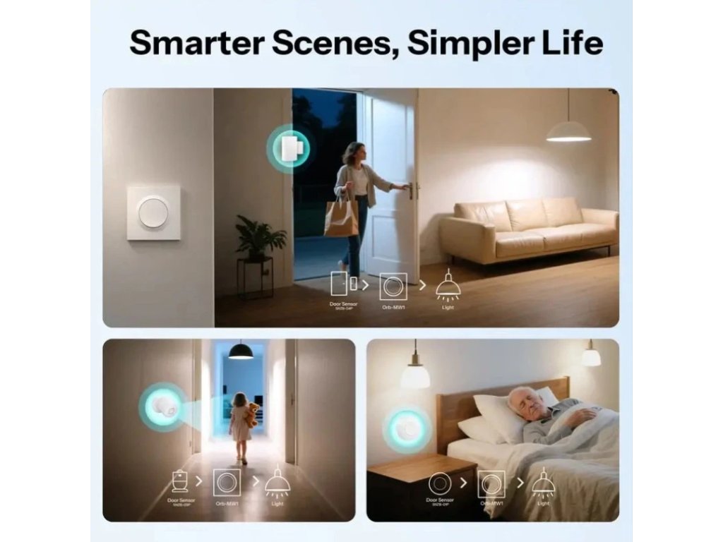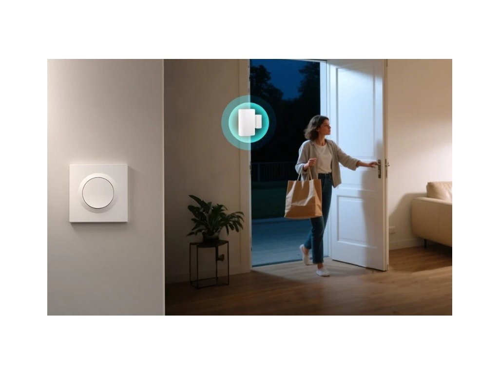 Vypínač lze také propojit se senzory dveří, pohybu nebo časovými plány. Díky tomu můžete vytvořit automatické scénáře – například rozsvícení při otevření dveří, noční aktivaci při pohybu nebo vypnutí všech světel jedním kliknutím před spaním.