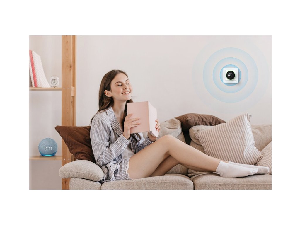 Termostat se připojuje pomocí Wi-Fi a spolupracuje s aplikacemi Smart Life a Tuya, kde můžete snadno upravovat teplotu, sledovat stav zařízení nebo měnit nastavení – odkudkoli. Pokud máte v domácnosti více termostatů, lze je seskupit a ovládat centrálně. Funkce rodinného sdílení zajišťuje, že přístup mohou mít i ostatní členové domácnosti.