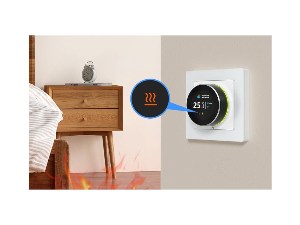 Avatto WT20R-EH je termostat navržený speciálně pro elektrické podlahové topné systémy. Umožňuje připojit jak interní čidlo, tak externí podlahové čidlo, takže máte pod kontrolou nejen teplotu v místnosti, ale i teplotu samotné podlahy. Ovládání je jednoduché, přehledné a díky chytrým funkcím přizpůsobené moderním domácnostem.
