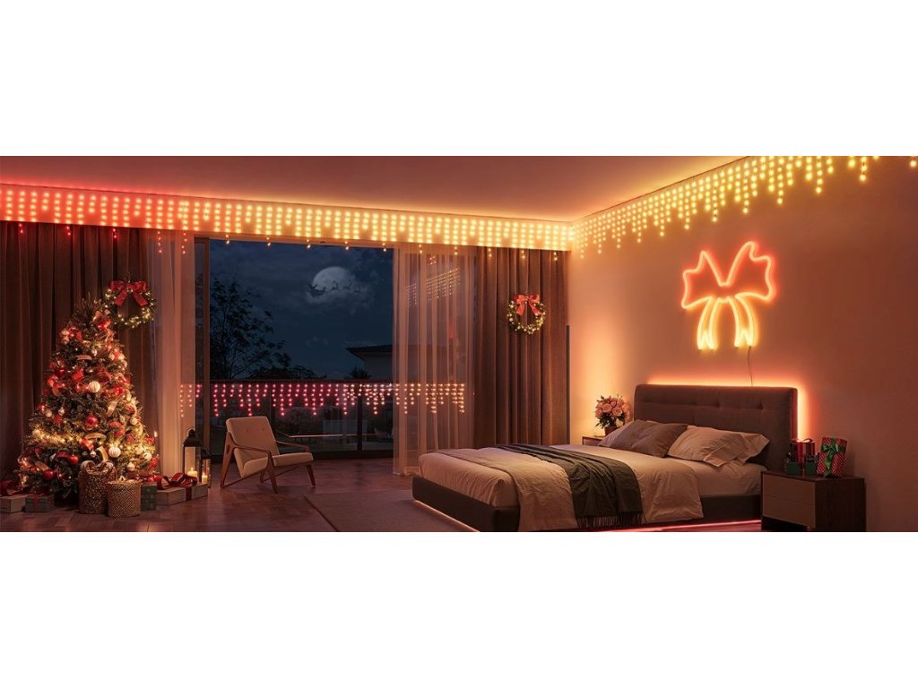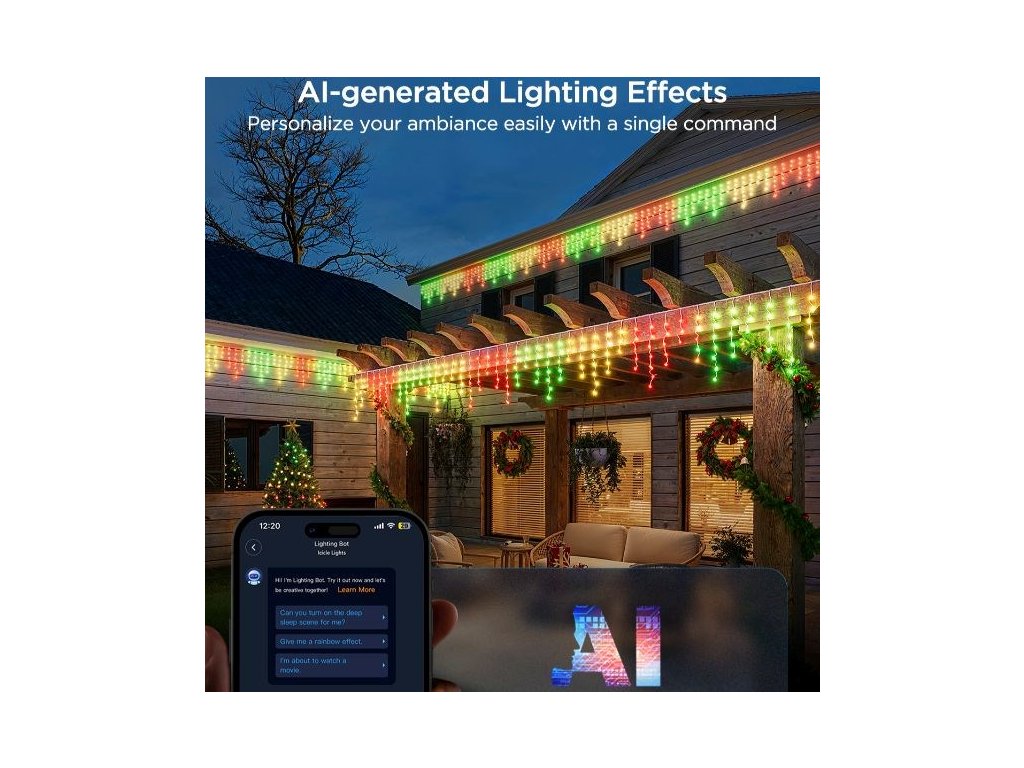 Novinkou je AI generování scén, které umožňuje vytvořit originální světelné efekty na základě textového popisu, hlasového příkazu nebo obrázku. Jednoduše popište náladu nebo nahrajte fotografii – řetěz přizpůsobí barvy podle vaší představy.