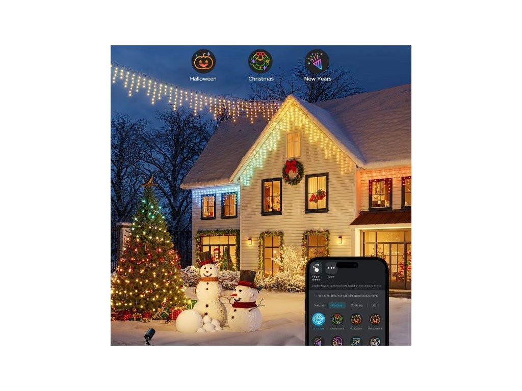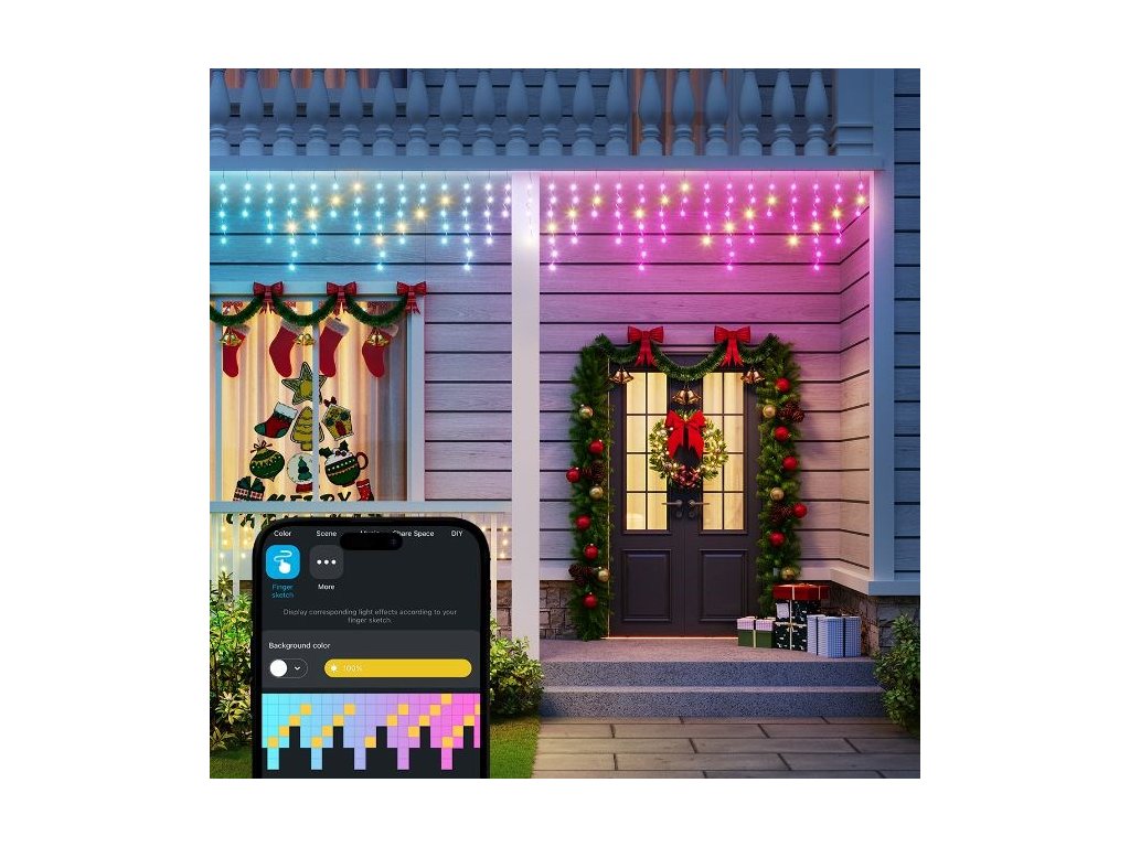 Govee Smart LED rampouchy představují elegantní a technicky vyspělý způsob, jak vytvořit stylové venkovní osvětlení. Díky technologii RGBIC dokážou diody zobrazovat až 57 barev najednou, což vytváří jemné přechody, výrazné barevné efekty i synchronizaci s hudbou. Každý metr přináší bohatou barevnou show vhodnou pro svátky, večírky i každodenní náladové osvětlení.