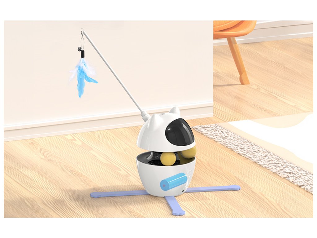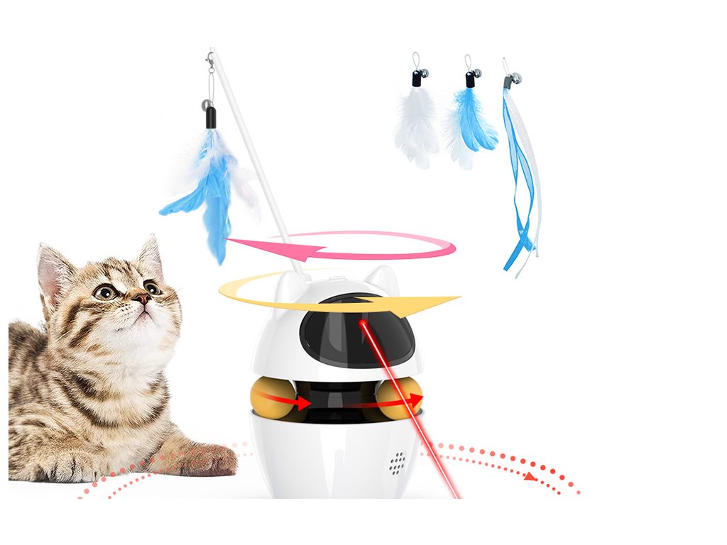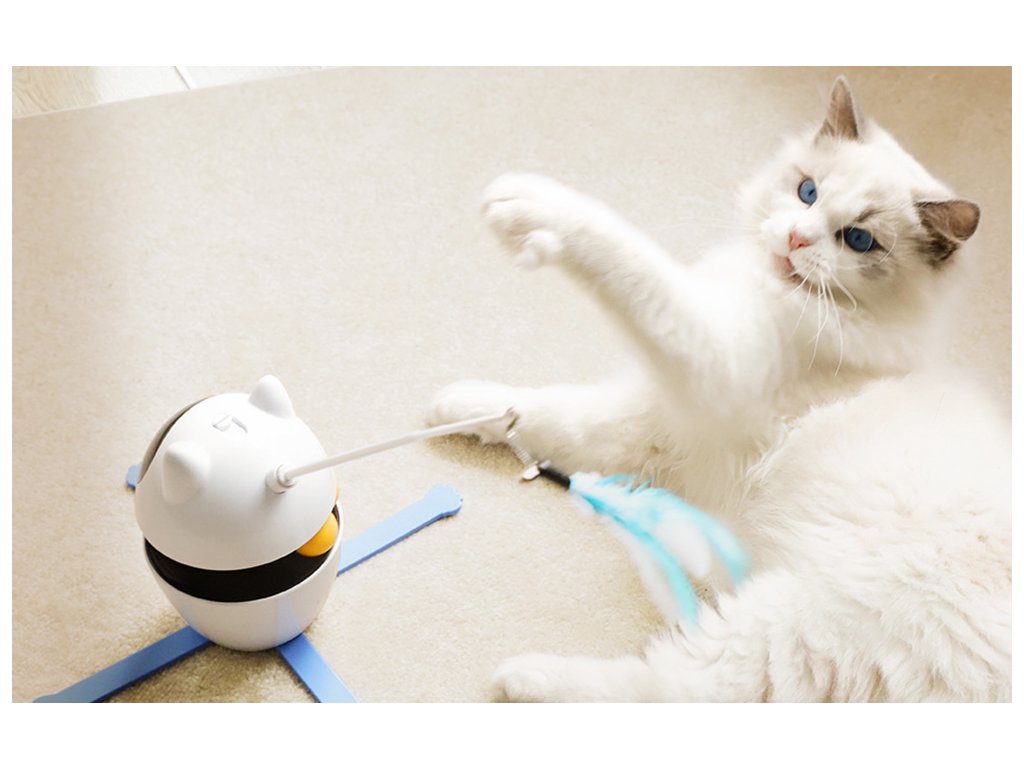 Tyč na hračce je zakončena třemi druhy peříček, která se automaticky otáčejí kolem své osy v rozsahu 360°. Tato funkce pomáhá kočkám uvolnit přirozenou potřebu hrát si a lovit. Peříčka lze snadno měnit podle nálady vašeho mazlíčka, což udržuje hru stále zajímavou.