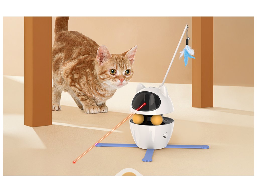 Interaktivní hračka Rojeco 3 v 1 je navržena tak, aby vaše kočka měla stále nové podněty a dokázala se zabavit i na dlouhé hodiny. Obsahuje laser, rotující míčky a tyč zakončenou peříčky, které si zvířata okamžitě zamilují. Horní část zařízení se otáčí o 360°, což vytváří realistický a dynamický zážitek při hře.