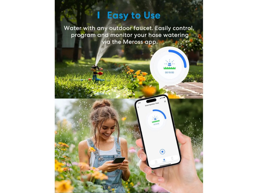 Udržujte trávníky, záhony i květináče vždy optimálně zalité — bez plýtvání. Meross Smart Sprinkler Timer Kit MST100HK (EU) spojuje chytré plánování, odolnou konstrukci a automatické přizpůsobení počasí, aby vaše rostliny prospívaly s minimálním úsilím.