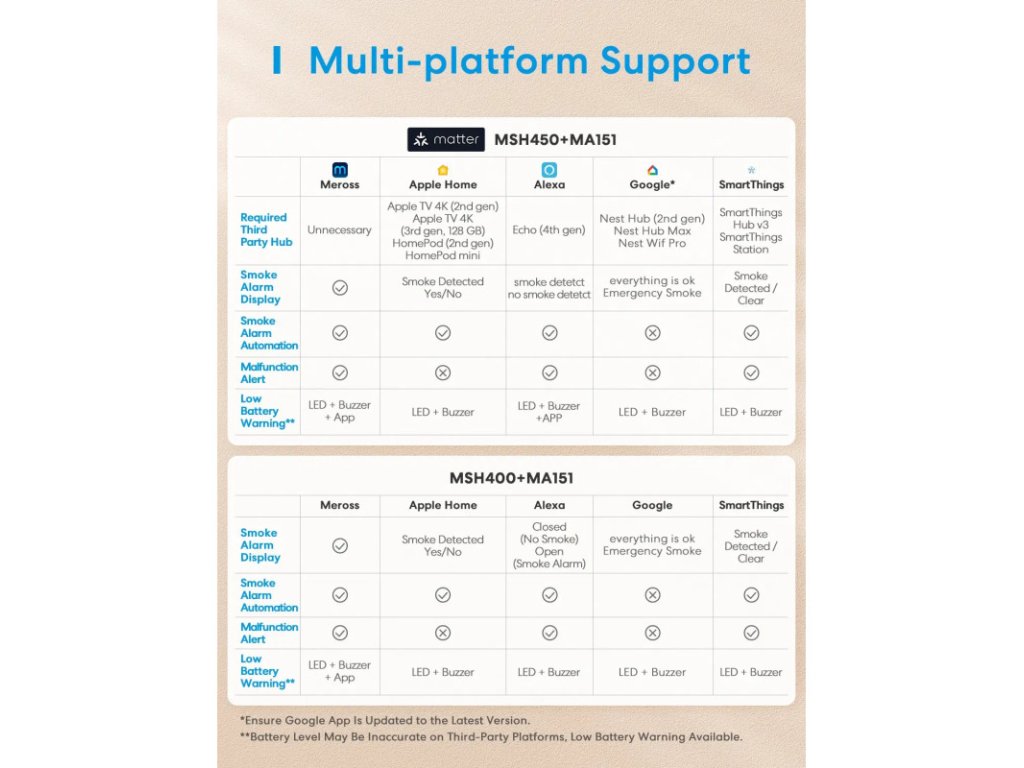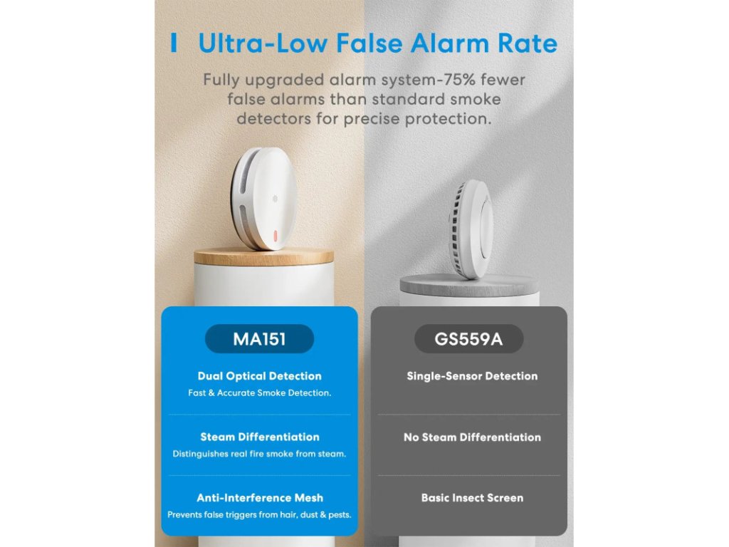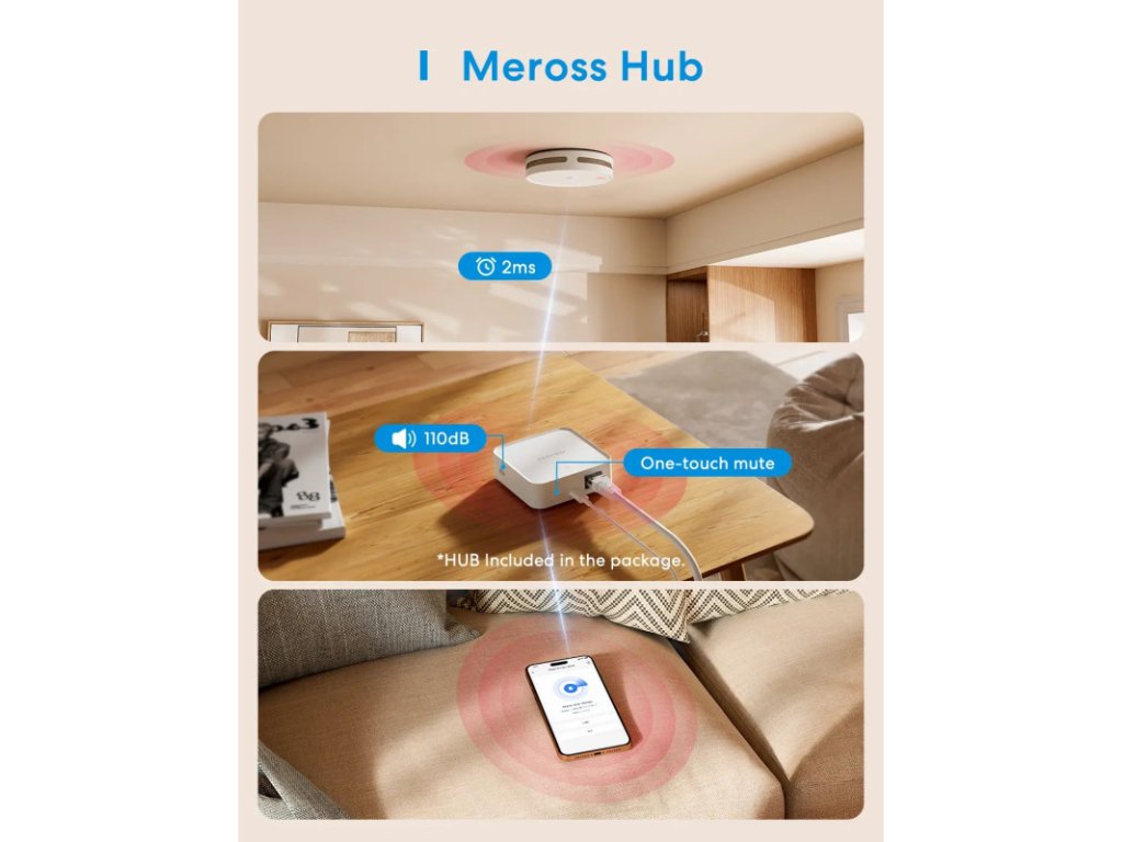 Meross MA151 je chytrý detektor kouře, který zároveň hlídá manipulaci a neoprávněný vstup. Díky této kombinaci nabízí komplexní ochranu domácnosti v jednom zařízení. Ihned po zachycení nebezpečí pošle upozornění do aplikace Meross, a to v reálném čase.