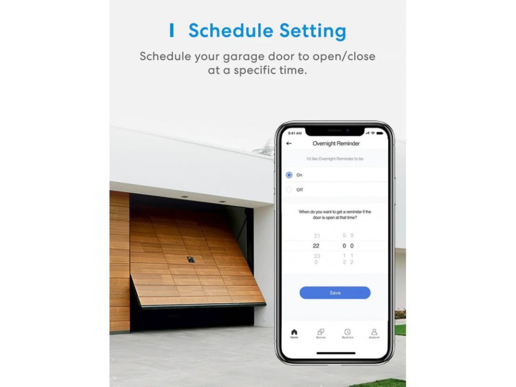 Vylepšete svůj běžný systém pohonu garážových vrat tímto praktickým spínačem. V kombinaci s aplikací Meross vám poskytne spoustu užitečných možností. Díky funkci dálkového ovládání můžete otevírat, zavírat a sledovat garáž na dálku. Budete také dostávat oznámení o otevření nebo zavření garážových vrat. Stává se vám, že zapomenete zavřít garáž? Žádné starosti! Pokud je otevřená příliš dlouho nebo v době spánku, Meross vás na to upozorní.