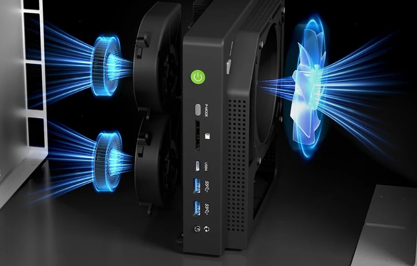 EVO-X2 využívá pokročilý chladicí systém se třemi heatpipe, dvěma velkými ventilátory pro CPU a samostatným chlazením RAM a SSD. Díky tomu zůstává systém stabilní a tichý i při dlouhodobém zatížení. Integrované RGB podsvícení s 16 režimy lze ovládat přímo tlačítkem na těle zařízení.