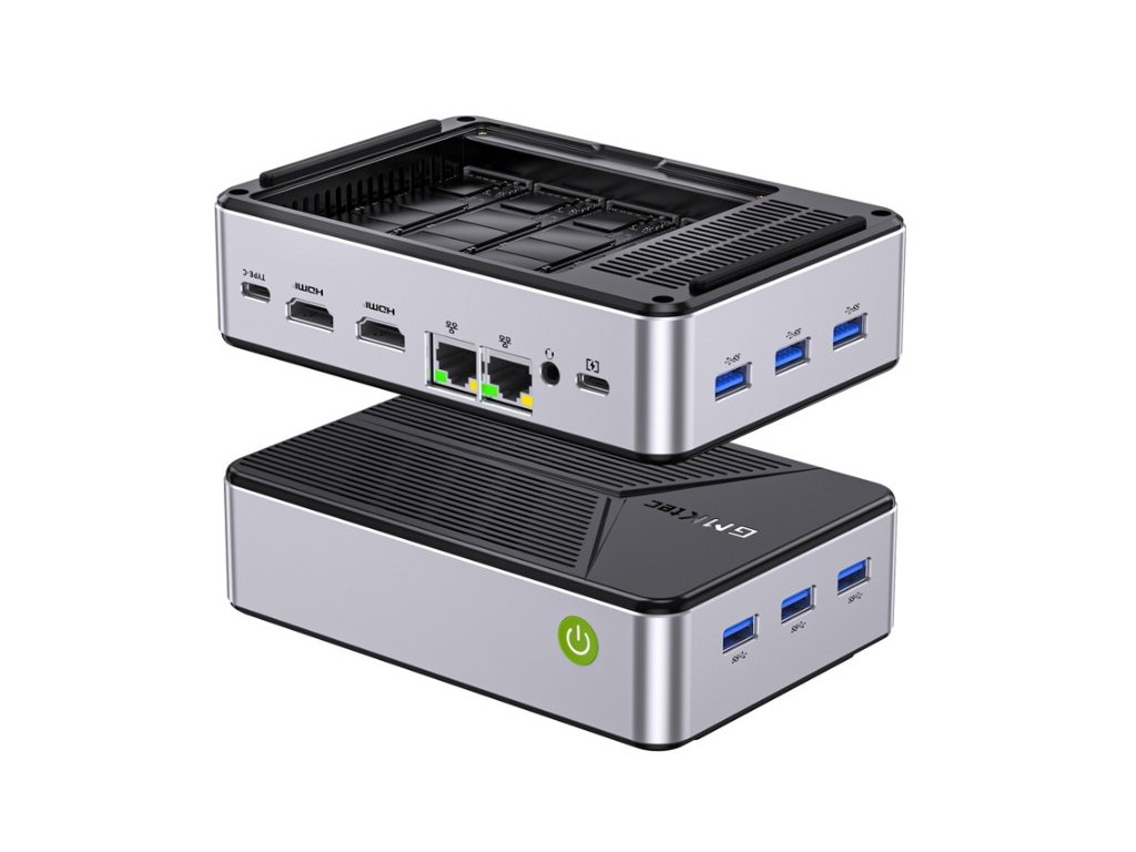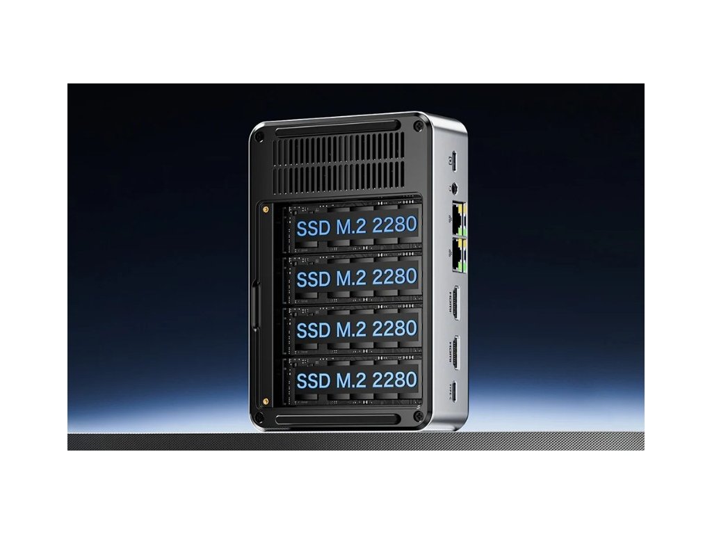 NucBox G9 podporuje instalaci až čtyř M.2 2280 PCIe 3.0 SSD disků (max. 4 TB každý), což umožňuje dosáhnout celkové kapacity až 16 TB. Díky rychlé paměti LPDDR5 o velikosti 12 GB a frekvenci 4800 MHz zvládne bez problémů multitasking, práci s velkými soubory i provoz NAS aplikací. Součástí je také 64GB eMMC úložiště.