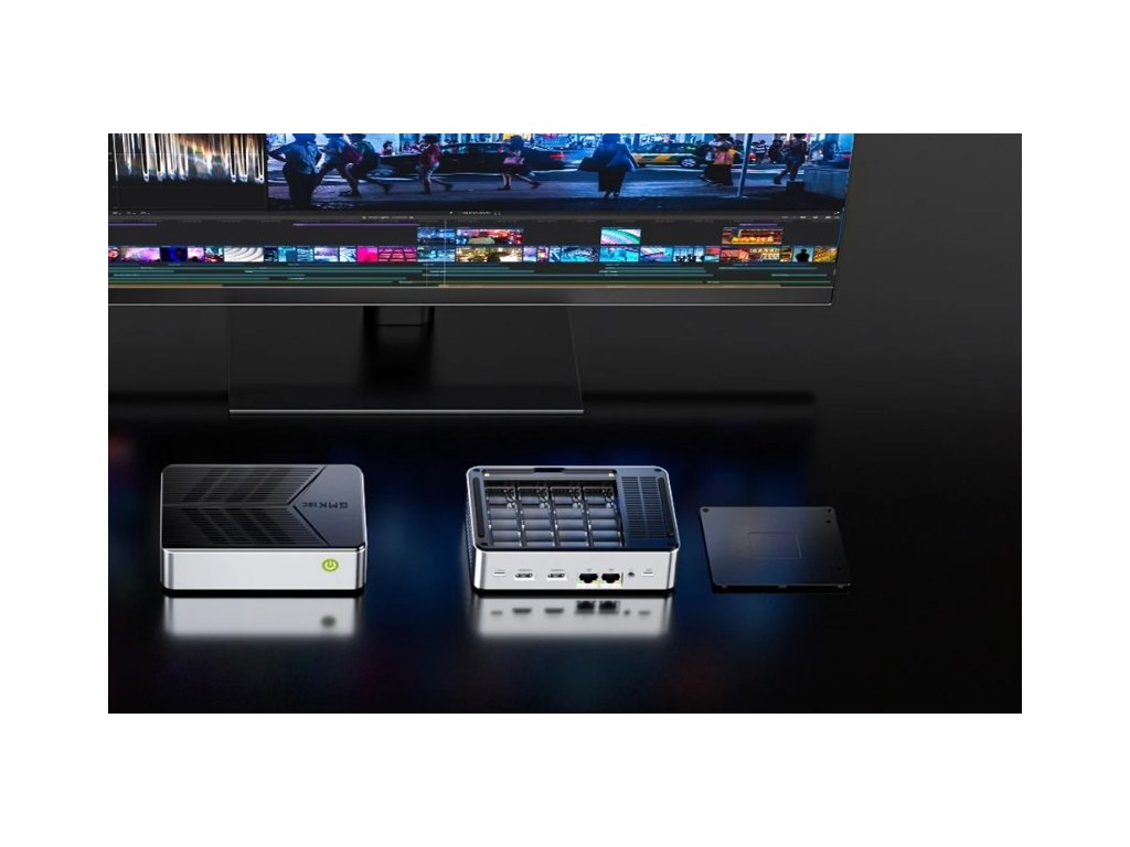 Konstrukce mini PC umožňuje rychlou výměnu SSD disků a rozšíření paměti. Zařízení lze umístit na stůl nebo připevnit pomocí VESA držáku na zadní stranu monitoru. Díky malým rozměrům se hodí i do prostorově omezených míst.