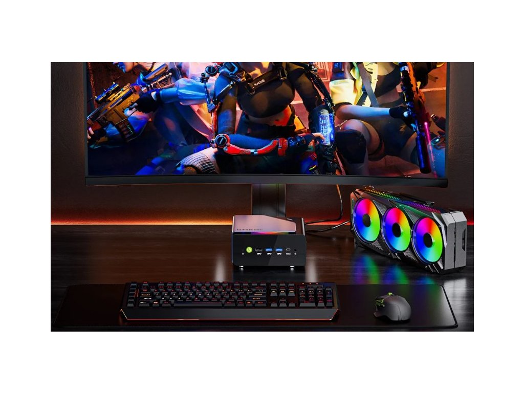 Jednou z hlavních výhod modelu K12 je port OCuLink (PCIe Gen4 x4), který umožňuje připojení externí grafické karty. Díky tomu lze z mini PC vytvořit výkonnou pracovní nebo herní stanici s výkonem srovnatelným s klasickým desktopem. Připojení eGPU výrazně rozšiřuje možnosti zařízení při renderingu, hraní her nebo práci s 3D grafikou.