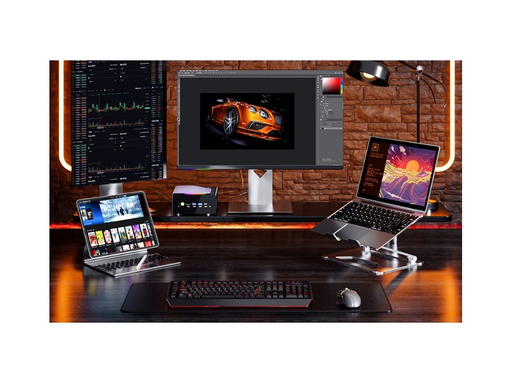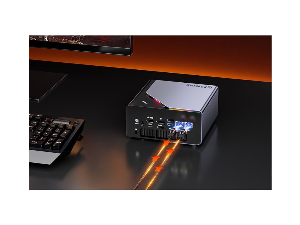 GMKtec K12 podporuje současné připojení až čtyř monitorů v rozlišení až 8K. K dispozici jsou moderní výstupy HDMI 2.1, DisplayPort 1.4 a dva porty USB4.0, které umožňují flexibilní zapojení monitorů, televizorů nebo projektorů.