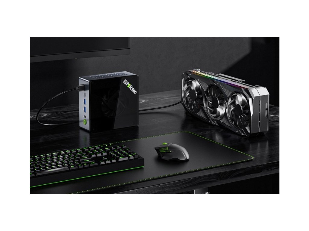 GMKtec M7 podporuje připojení až čtyř monitorů v rozlišení až 8K (přes HDMI 2.1 a DisplayPort 2.0), což umožňuje efektivní multitasking a práci s rozsáhlými pracovními plochami. Díky portu Oculink je možné připojit i externí grafické karty pro ještě větší výkon.