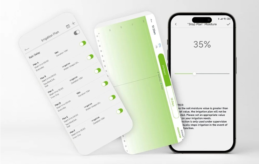 Pomocí aplikace RainPoint Home můžete snadno nastavit zavlažovací plány, sledovat vlhkost půdy nebo kontrolovat stav systému.