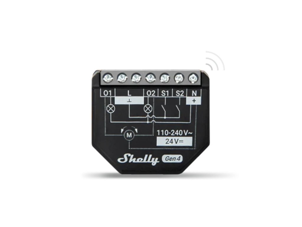 - Inteligentní žaluzie – Integrujte Shelly 2PM Gen4 se svými žaluziemi a udělejte si energeticky efektivní dům. Automatické nastavení žaluzií podle denní doby nebo povětrnostních podmínek. Například zatáhněte žaluzie během nejteplejší části dne, aby se váš domov ochladil, a ráno je otevřete, abyste propustili přirozené světlo a snížili potřebu umělého osvětlení.
