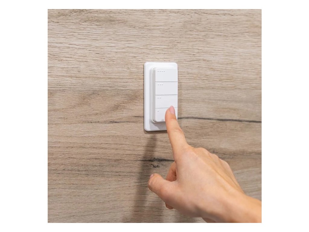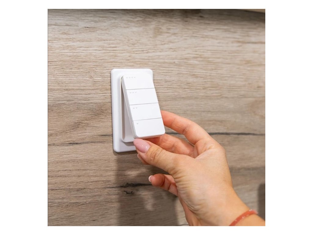 Každé ze čtyř tlačítek podporuje více typů stisků, takže si snadno nastavíte různé funkce – od zapnutí světla přes ovládání žaluzií až po spuštění komplexních scén typu Odchod z domu nebo Film. Ovládání je okamžité a funguje i bez otevření aplikace v telefonu.