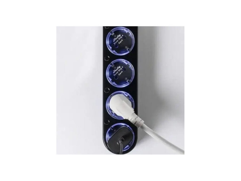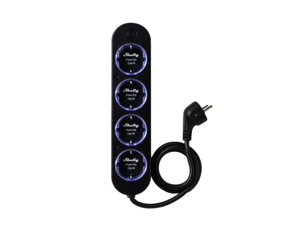 Shelly Power Strip 4 Gen4 nabízí možnost plánování až 20 časových scénářů, podporu lokálních akcí a vícebarevné LED indikátory s nočním režimem. S 1,5 m dlouhým kabelem se snadno umístí pod stůl, postel nebo k pracovní ploše.