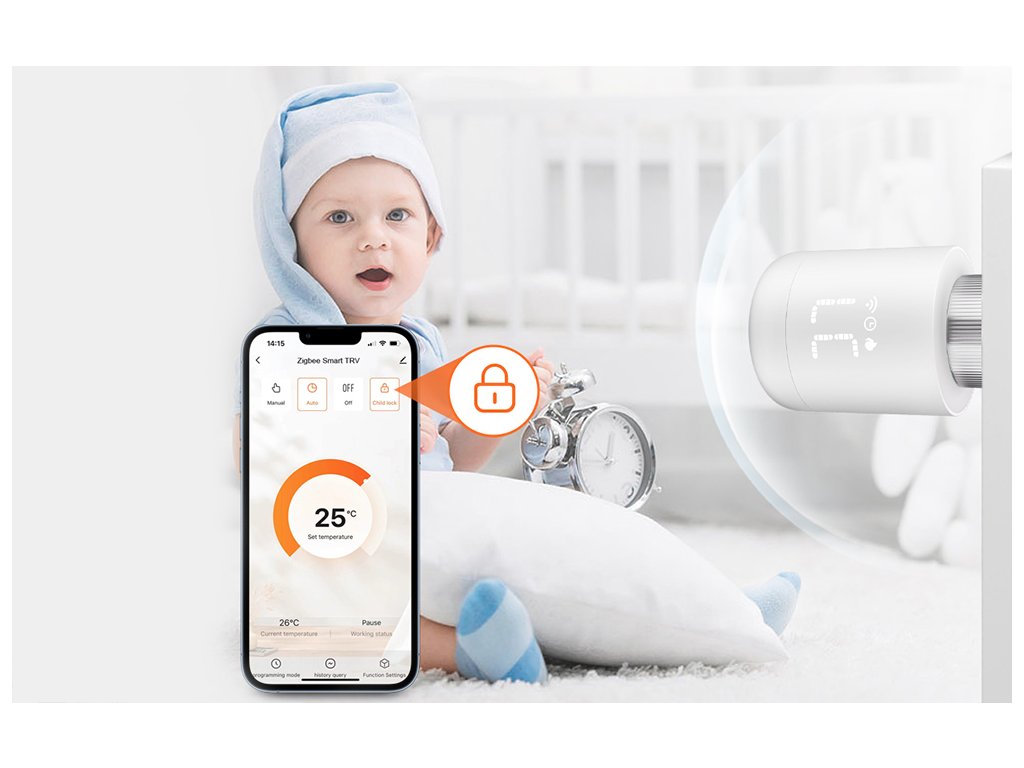 Když si vyberete zařízení Avatto, nemusíte se bát o svou bezpečnost a bezpečnost své rodiny. V aplikaci najdete funkci zámku, aby vaše dítě nemohlo ovládat hlavici, takže si můžete být jisti, že je správně chráněno. A co víc, chytrá hlavice je standardně naprogramována tak, aby se zapínala a vypínala při určité teplotě a čase.
