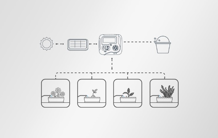 Systém funguje zcela samostatně – vodu čerpá z libovolné nádoby (např. sudu nebo kanystru). Není potřeba žádné napojení na vodovod ani složité instalatérské úpravy. To výrazně rozšiřuje možnosti použití i v místech, kde by klasická závlaha nebyla možná.
