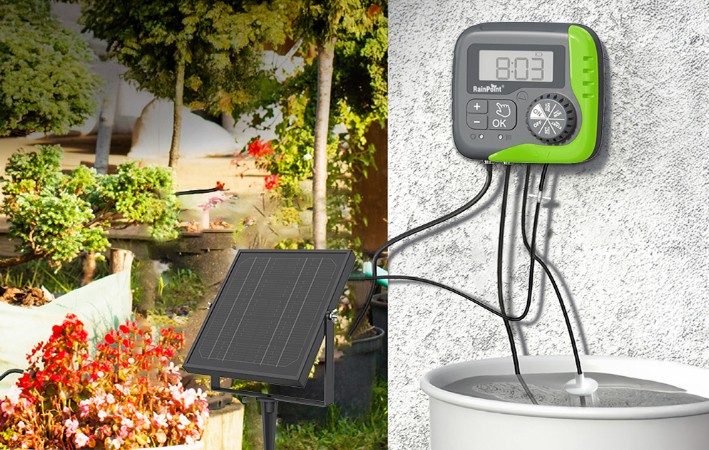 RainPoint IK15P je praktická solární zavlažovací sada určená pro místa bez přístupu k vodovodnímu řadu nebo elektrické síti. Díky vestavěnému čerpadlu si bere vodu přímo z nádrže a pomocí kapkového systému ji dávkuje přímo ke kořenům rostlin. To z ní dělá ideální řešení pro balkony, terasy, skleníky i zahrady.