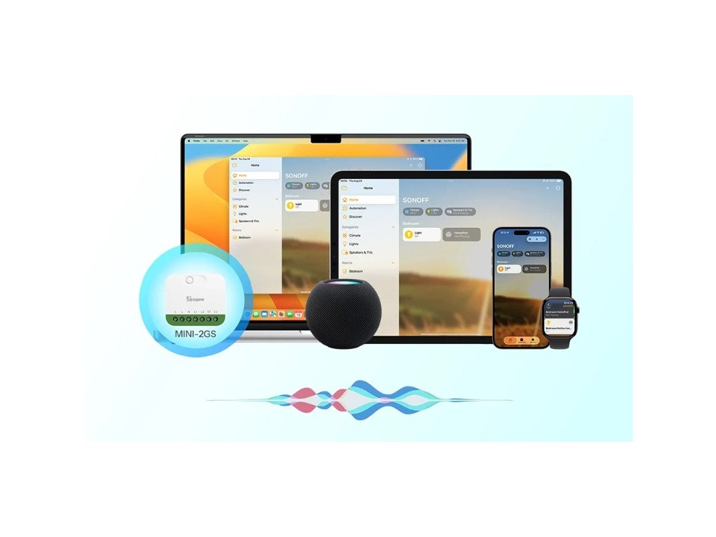 Sonoff MINI-2GS využívá moderní standard Matter, který zajišťuje skutečnou interoperabilitu mezi platformami. Jeden vypínač tak můžete používat současně v Apple Home, Google Home, Amazon Alexa, Home Assistant i Samsung SmartThings, bez nutnosti řešit rozdíly mezi systémy.