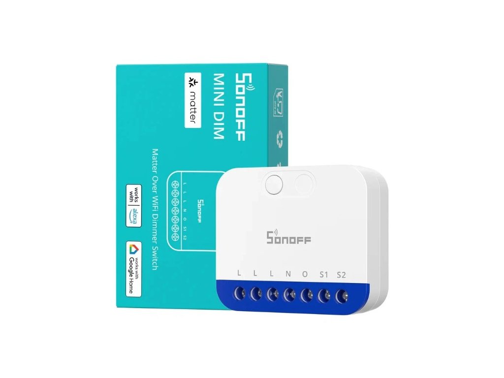 SONOFF MINI-DIM je ultrakompaktní vestavný stmívač z řady MINI Extreme, navržený pro moderní chytré domácnosti využívající standard Matter over Wi-Fi. Instalace probíhá přímo do instalační krabice za stávající vypínač, takže není nutné měnit design ani elektroinstalaci. Zachováno zůstává i manuální ovládání světla.