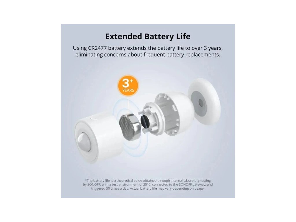 ** Výdrž baterie je teoretická hodnota z laboratorních testů SONOFF (25 °C, brána SONOFF, 50 spuštění/den). Skutečná výdrž se může lišit podle používání a prostředí.
