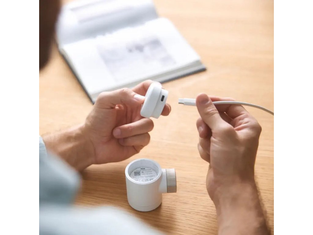 Hlavice obsahuje integrovanou dobíjecí baterii, která se nabíjí přes konektor USB-C. Plné nabití trvá přibližně dvě hodiny a obvykle vystačí na celou topnou sezónu.