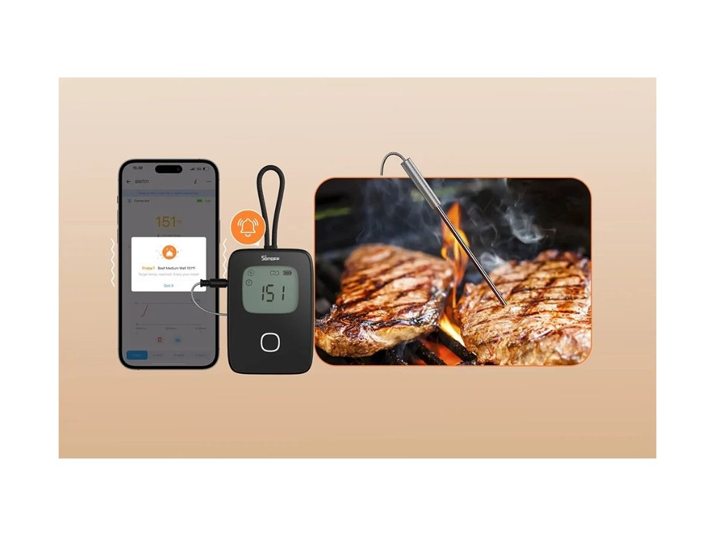 Teploměr Sonoff BMT01 je ideálním nástrojem pro každého milovníka masa, grilování a precizního vaření. Umožňuje sledovat teplotu masa v reálném čase s přesností ±1 °C a nabízí grafické zobrazení změn v aplikaci eWeLink. Díky tomu budete mít dokonalý přehled o přípravě jídla a můžete se vyhnout podpečení i vysušení.