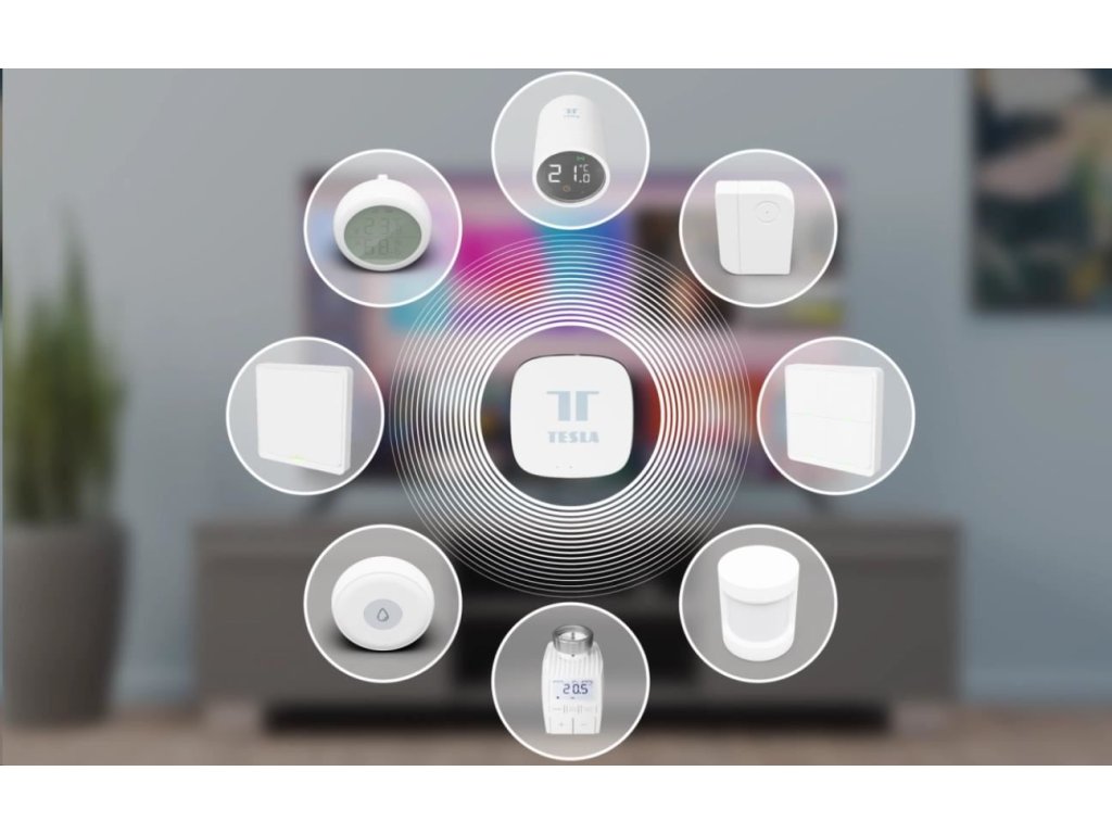 Pro optimální fungování potřebujete centrální jednotku Tesla Smart ZigBee Hub, která vytváří propojení mezi všemi zařízeními v domácnosti a umožňuje jim vzájemnou komunikaci.