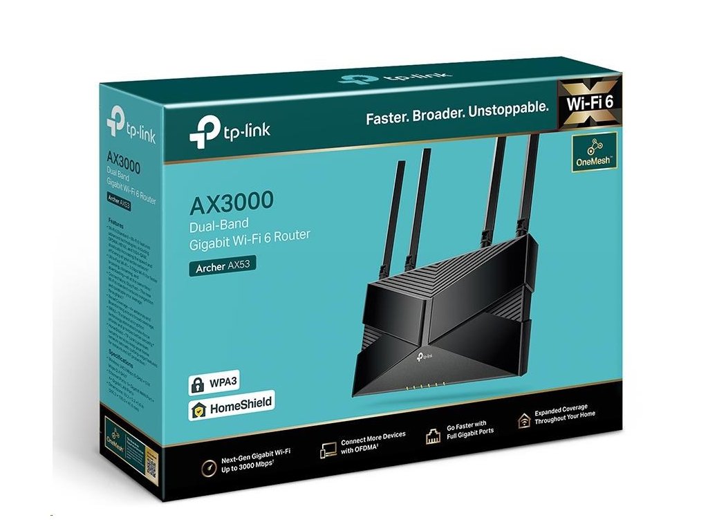 TP-Link Archer AX53 OneMesh/EasyMesh WiFi6 router (AX3000, 2,4GHz/5GHz, 1xGbEWAN, 4xGbELAN)