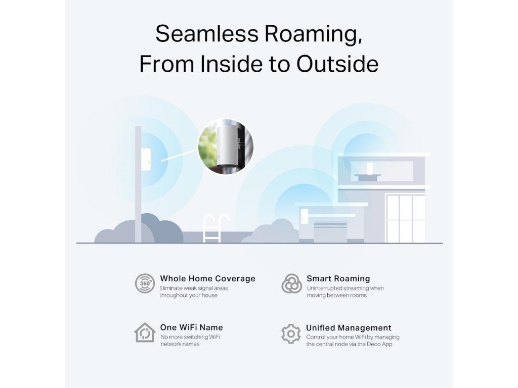 Jednotka je plně kompatibilní se všemi ostatními modely Deco, takže ji můžete kdykoliv snadno začlenit do existující mesh sítě. Díky technologii AI-Driven Mesh se zařízení samo přizpůsobuje specifickým podmínkám vaší domácnosti.