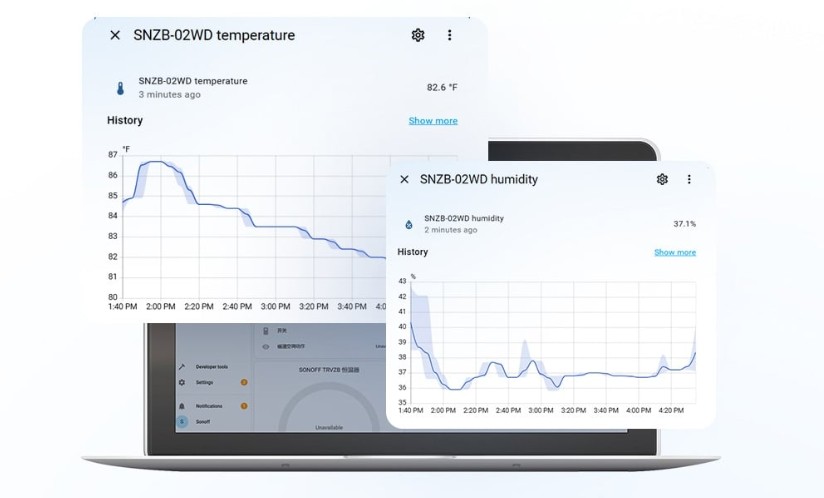 Senzor je kompatibilní s aplikací eWeLink, kde lze sledovat a analyzovat historická data až 180 dní zpětně (denní, měsíční i pololetní přehledy). Uživatelé mohou nastavit upozornění například na pokles teploty v teráriu či skleníku a ihned reagovat. Díky podpoře ZigBee 3.0 je zařízení snadno integrovatelné do chytrých domácností, a to i prostřednictvím open-source platforem, jako je Home Assistant.