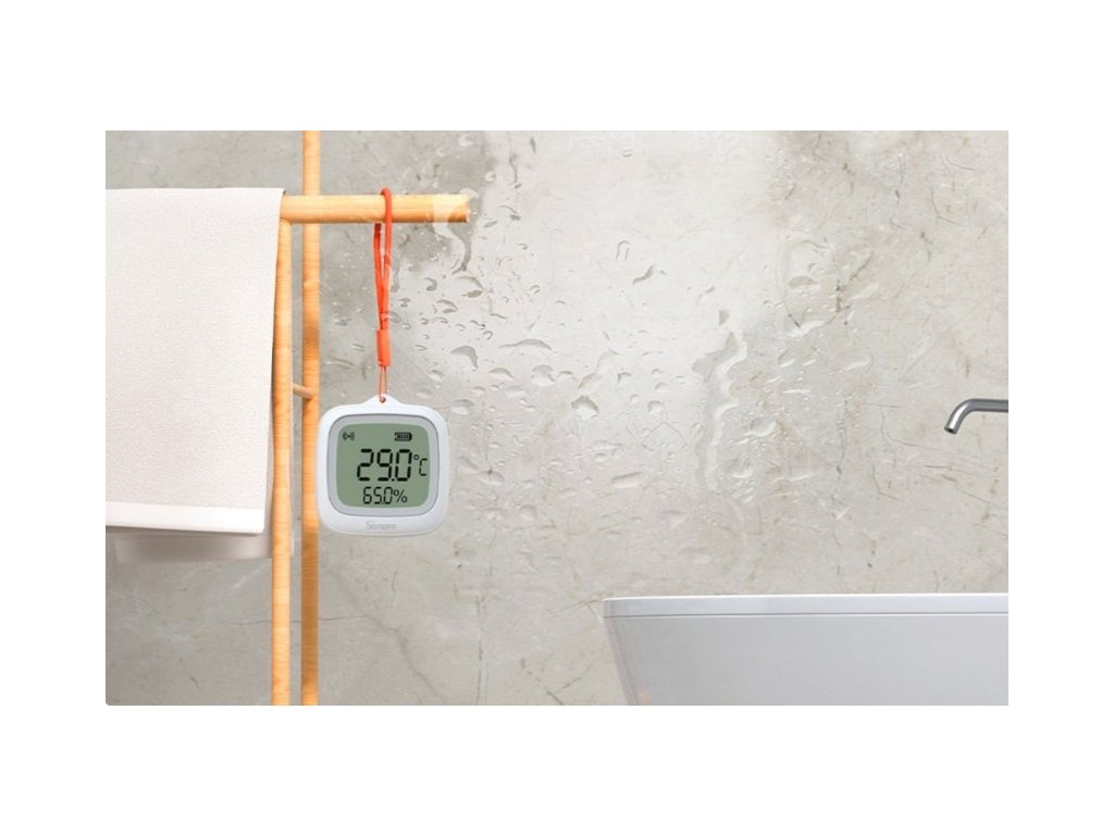 SNZB-02WD lze namontovat dvěma způsoby – pomocí magnetu nebo zavěšením na šňůru. Napájení zajišťuje baterie typu CR2477, která vydrží až dva roky provozu, takže senzor funguje spolehlivě dlouhodobě bez nutnosti časté výměny.